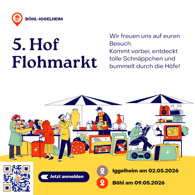 Herzlich Willkommen zum 5. Hofflohmarkt in Böhl-Iggelheim! Wir freuen uns auf euren Besuch.